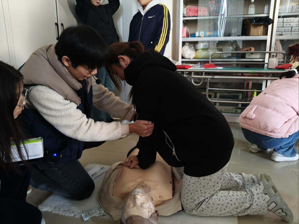 培训现场气氛高涨,老师们通过生动的教学技巧和丰富的实践经验,从心肺复苏术的操作要点,到伤口包扎的正确方法等内容,一一进行细致传授,使深奥的知识变得易于理解。同学们认真聆听,积极参与实际操作练习。大家两两一组,互相模拟急救场景,进行心肺复苏按压、三角巾包扎等操作练习。培训过程中,讲师认真纠正同学们操作的不规范之处,确保每一位同学都能熟练掌握相关技能。