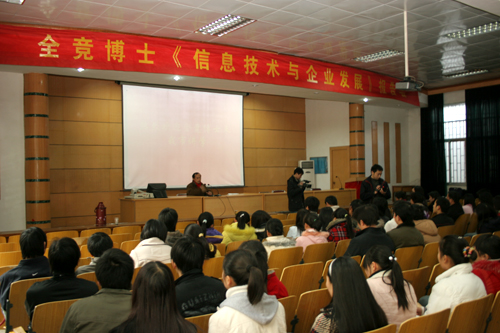 新闻网讯 (记者 古月 学生记者 王攀 叶高峰 王少青)1月2日下午,我院学术报告厅座无虚席。旅美华人全竞博士主讲的《信息技术与企业发展》学术报告吸引着大家。