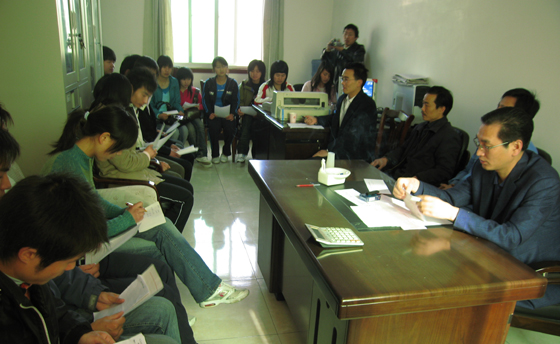 在参观了该公司现代化的办公流程后,师生们与公司办公室、财务和销售部门的三位经理杨德华、彭玉林、李海棠进行了座谈。同学们就公司进货的流程、数据,销售部门的业务过程和流程以及数据等问题向3位资深经理作了咨询, 3位经理一一做了解答。