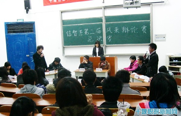 新闻网讯 (学生记者 陈小娥 通讯员 张晶 郑方燕)为培养学生敏捷的思辨能力、良好的语言表达能力、扎实的写作基础以及团队合作精神。4月5日晚,信息与智能工程系第二届风采辩论赛总决赛在4101教室精彩上演。系党总支副书记莫足琴、系辅导员和全系同学观摩了本次辩论赛。