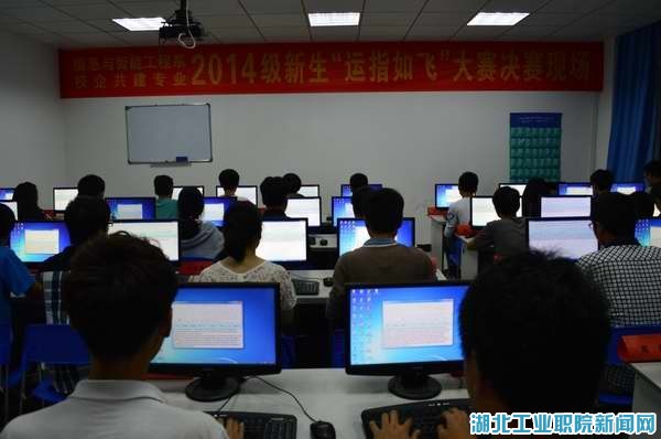 新闻网讯(通讯员 张虎)9月26日晚19:00,信息与智能工程系校企共建专业2014级新生“运指如飞”文字录入大赛决赛在4号教学楼4302实训室拉开帷幕。2014级全体师生通过机房控制软件观看了本次比赛。