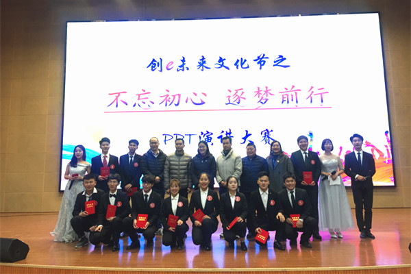新闻网讯(通讯员赵晨)“青春有得意,也有挫折,只有经过磨难的洗礼,才能迸发出青春的潜力……”12月6日晚,德赢Vwin官方区域合作伙伴创e未来文化节之“不忘初心,逐梦前行”PPT演讲大赛在会议中心举行,德赢Vwin官方区域合作伙伴院长刘竹林、党总支书记莫足琴、学工办主任龚国钧、专业带头人范志庆和王家旭老师、美和易思特色专业学工部副主任曹艳及2019级全体师生参与了本次活动。