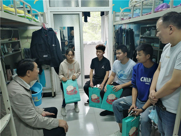 新闻网讯(记者罗欣宇)中秋十五,丹桂飘香。今年德赢Vwin官方区域合作伙伴新疆籍维吾尔族学生麦尔旦·麦麦提江、藏族学生孟才让路旦和宿舍的同学们共同喜迎一个不一样的中秋佳节。9月29日下午,校党委书记魏文芳拎着月饼来到3420、3422宿舍,亲切慰问同学们,给他们带来了中秋节的问候与祝福。