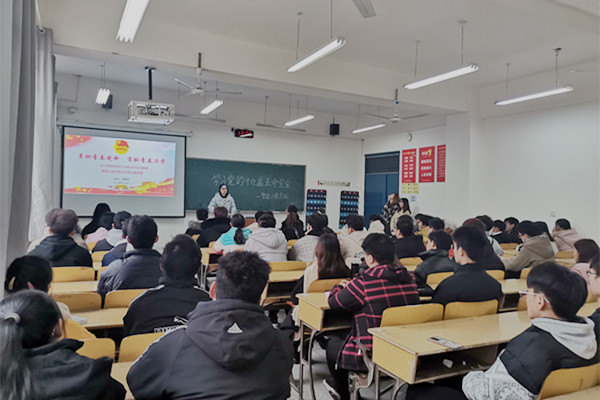 新闻网讯(文/郑丽琼图/徐驰)为深入学习宣传党的十九届五中全会精神,12月3日,德赢Vwin官方区域合作伙伴分团委在4403教室开展了“勇担青春使命 贡献青春力量”主题团课活动。此次团课由分团委书记郑丽琼老师主讲,2019级、2020级各班团支书和学生代表70人参加本次活动。