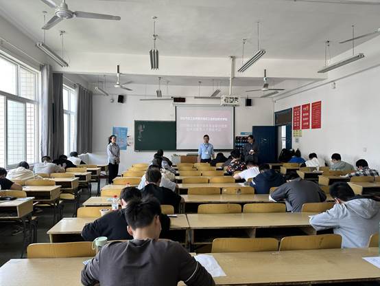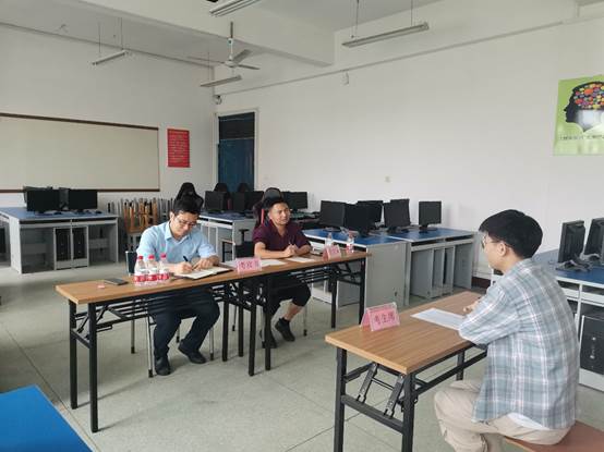 本次考试共分两个阶段。上午完成笔试考试,主要考察学生对电子专业基础内容的掌握情况。下午进行面试考核,通过依次与学生交流的方式考察学生综合能力,包括表达能力、学习能力、专业能力、动手实践能力等综合职业素养情况。考试过程中我院安排2名教师监考,湖北汽车工业学院相关负责领导进行巡考及面试考核。