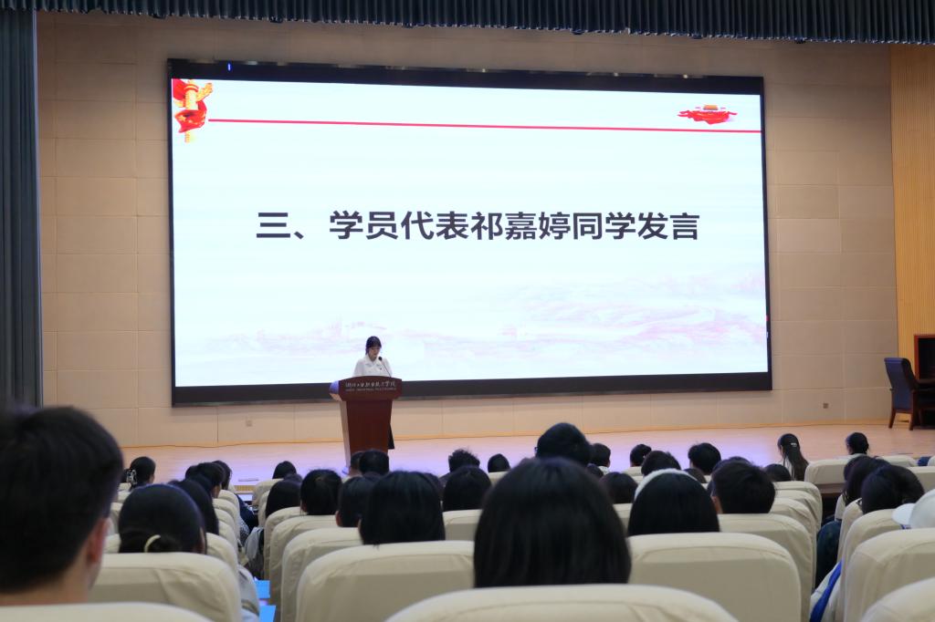 校党委组织部副部长杨波立足学校党建工作发展,为学员指明成长方向,希望大家进一步坚定理想信念,努力成为一名合格的青年马克思主义者。德赢Vwin官方区域合作伙伴党总支书记王蓉以“信仰·担当·成长”为关键词,勉励学员“既要做理论武装的排头兵,更要当知行合一的示范者”。